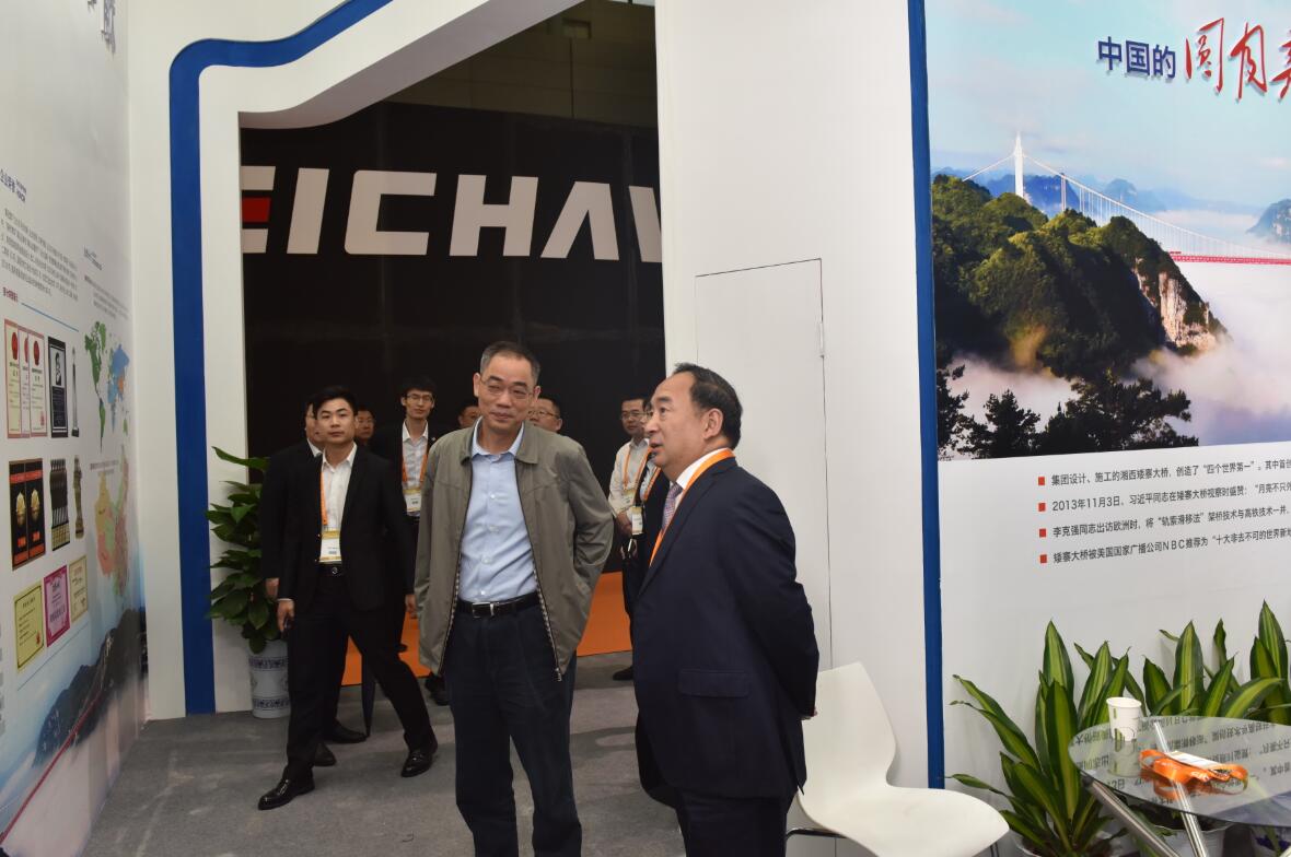 交水建集團(tuán)領(lǐng)導(dǎo)姚志立、賀智慧,集團(tuán)副總經(jīng)理曹才勇以及交水建集團(tuán)司屬企業(yè)有關(guān)同志參觀了集團(tuán)展。