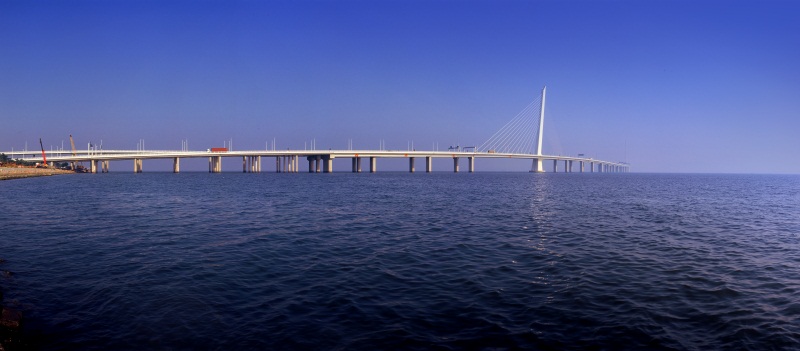 安慶長(zhǎng)江公路大橋 廣東深圳灣大橋,斜拉橋,2007年7月竣工通車,是我國(guó)第一條跨海連接內(nèi)地與香港的陸路通道,是當(dāng)時(shí)世界上最寬的單索面斜拉橋,是國(guó)內(nèi)最寬、設(shè)計(jì)壽命最長(zhǎng)、建造標(biāo)準(zhǔn)最高的公路大橋,被譽(yù)為“海上彩虹”。